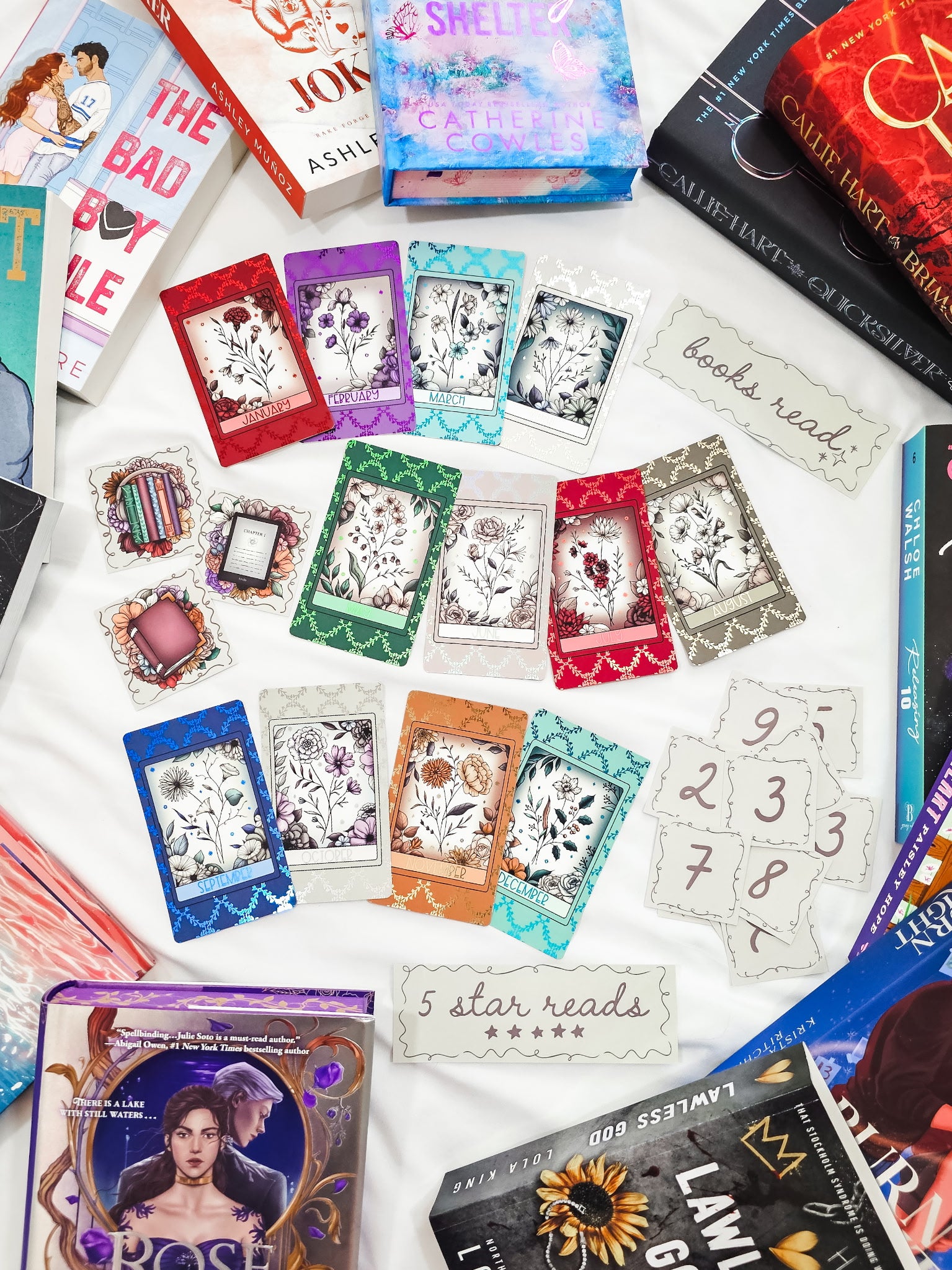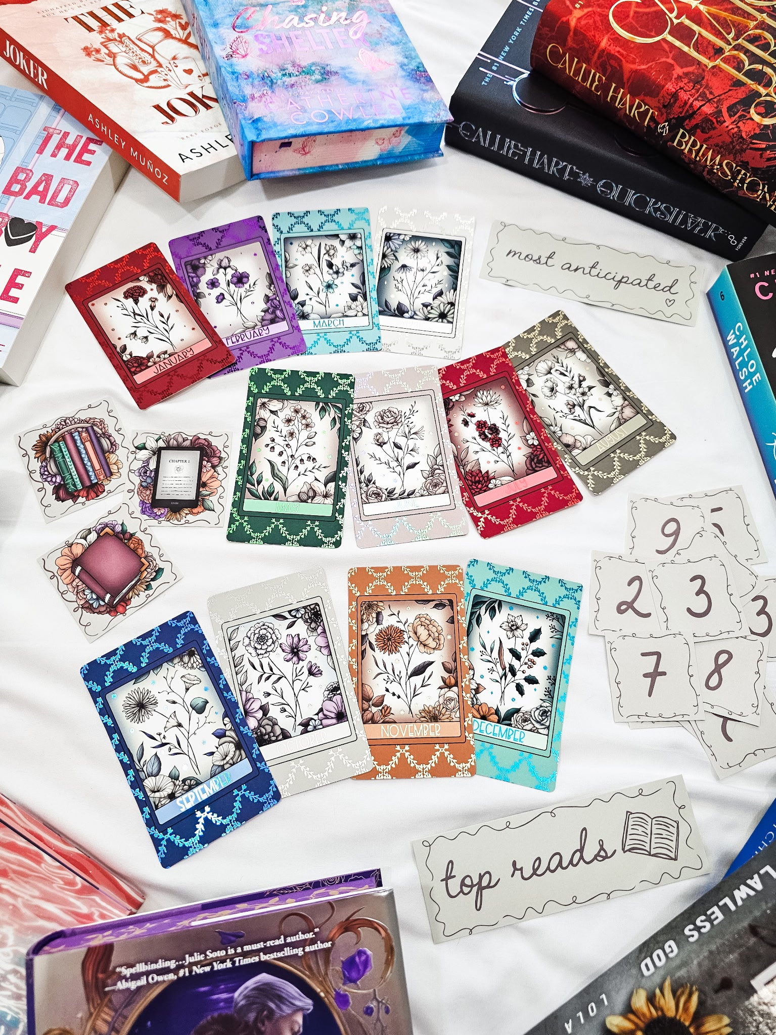 Free shipping within the US. This bundle comes with 12 foiled cards, numbers 0 - 9 (multiples of 0, 1, 2, and 3), 3 icons, and 2 bookmarks with reversible verbiage.